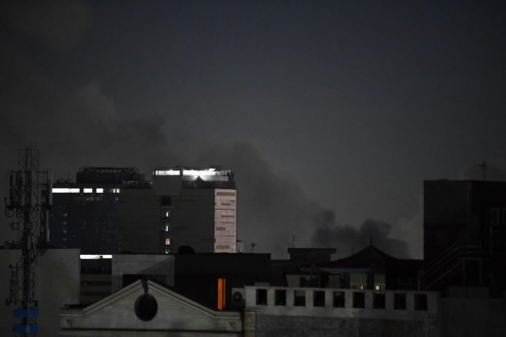 這是3月1日晚在伊朗首都德黑蘭市區(qū)拍攝的濃煙。新華社記者沙達提攝