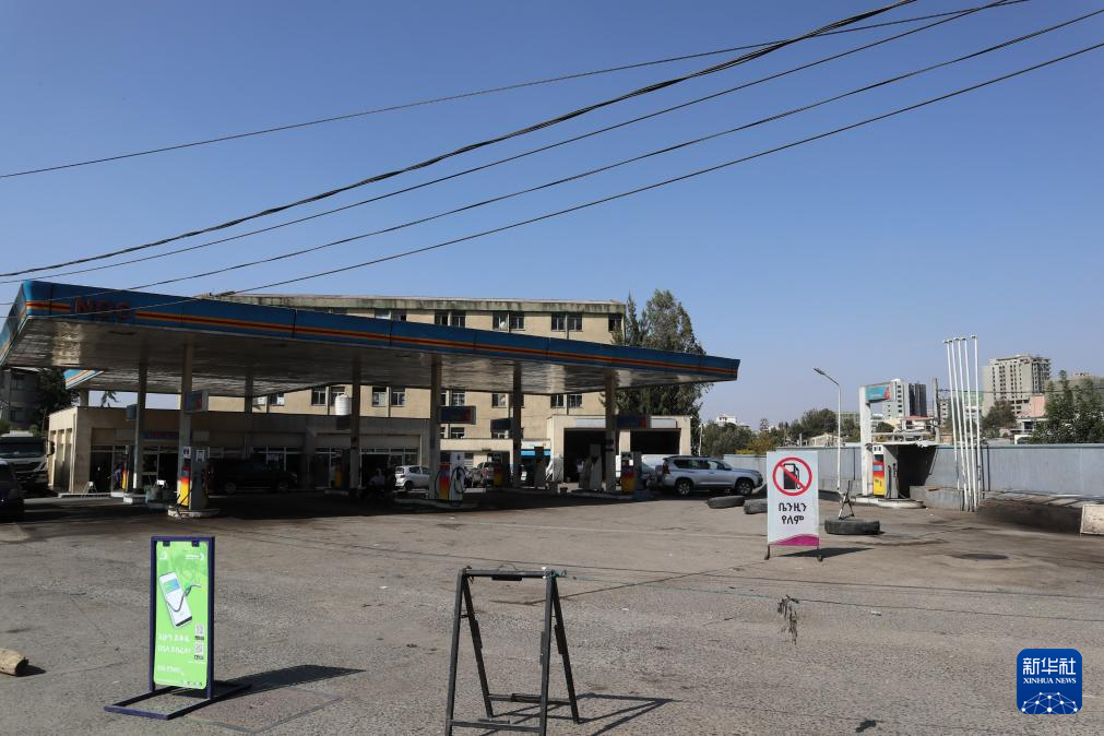 3月17日,在埃塞俄比亞首都亞的斯亞貝巴,由于石油供應緊張,一個加油站暫停營業(yè)。新華社記者 劉方強 攝