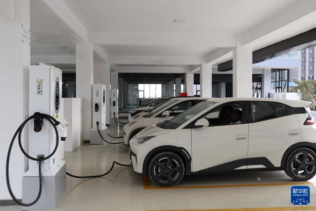 這是3月16日在埃塞俄比亞首都亞的斯亞貝巴拍攝的一處電動汽車充電站。新華社記者 劉方強 攝