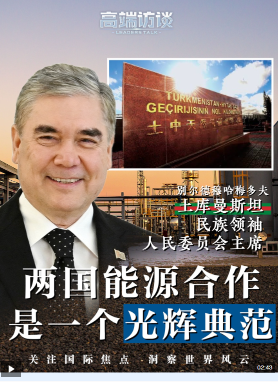 近日,土庫曼斯坦民族領(lǐng)袖、人民委員會主席別爾德穆哈梅多夫在接受總臺《高端訪談》專訪時表示,能源領(lǐng)域是土庫曼斯坦—中國戰(zhàn)略合作的核心方向。