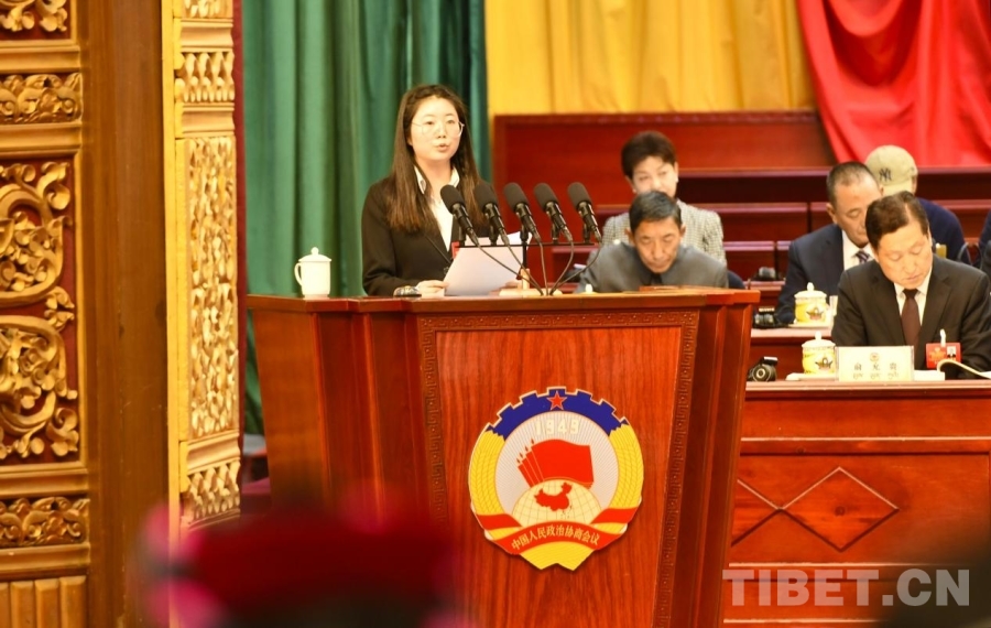 圖為政協(xié)委員蔣妙妙在政協(xié)第十二屆西藏自治區(qū)委員會(huì)第四次會(huì)議中作大會(huì)發(fā)言 攝影:趙振宇