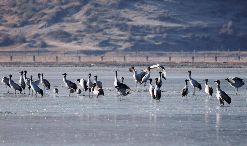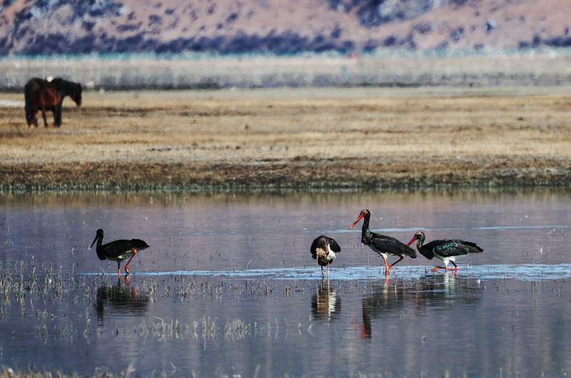 2月2日是第30個(gè)“世界濕地日”。在云南省迪慶藏族自治州香格里拉的納帕海濕地,一幅生動(dòng)的生態(tài)畫卷正在展開:成群的黑頸鶴與黑鸛在淺水區(qū)悠然覓食,各類野鴨在湖中巡游,斑頭雁劃過長空。