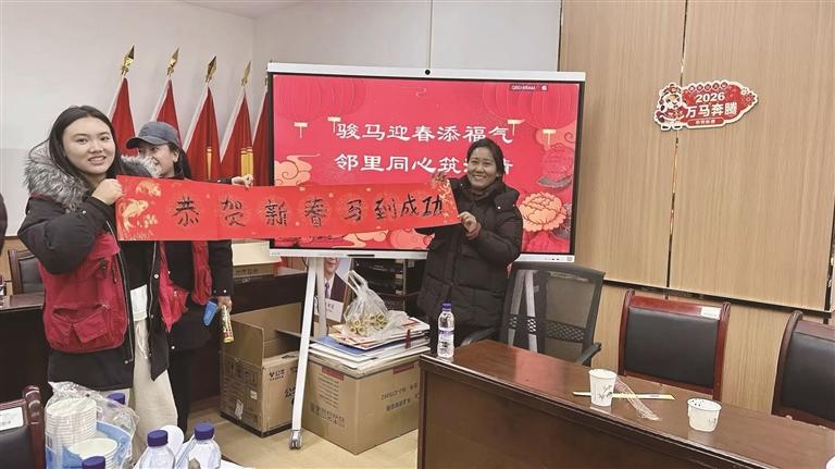 活動(dòng)伊始,居民群眾來到簽到墻前提筆寄語,寫下對(duì)家園的深深祝福。黨員主動(dòng)亮身份、擔(dān)責(zé)任,網(wǎng)格員忙碌引導(dǎo)、貼心服務(wù),一片片“黨建紅”映照著一張張笑臉,為冬日注入融融暖意。