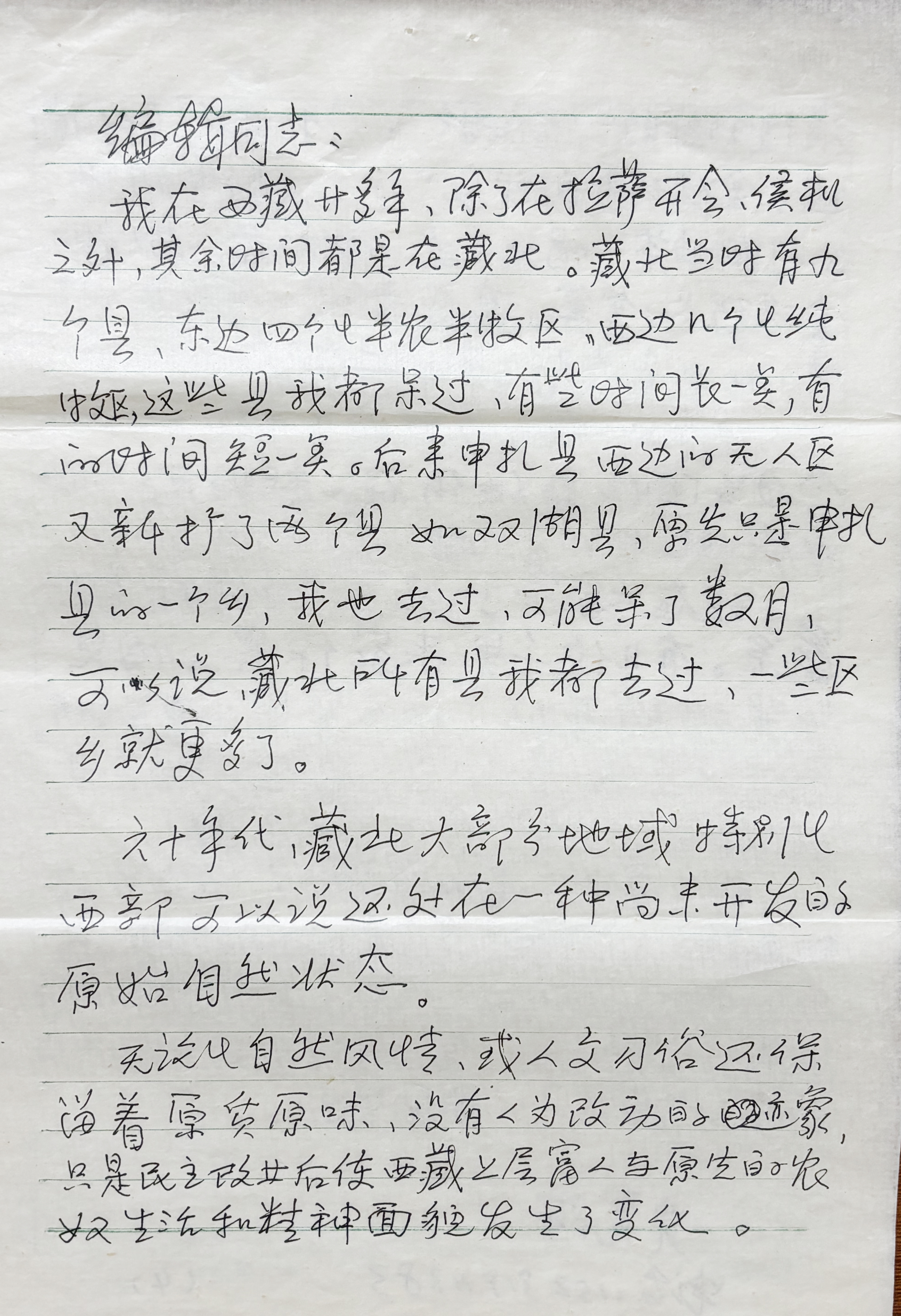 圖為讀者寫給《中國西藏》漢文版雜志編輯的信