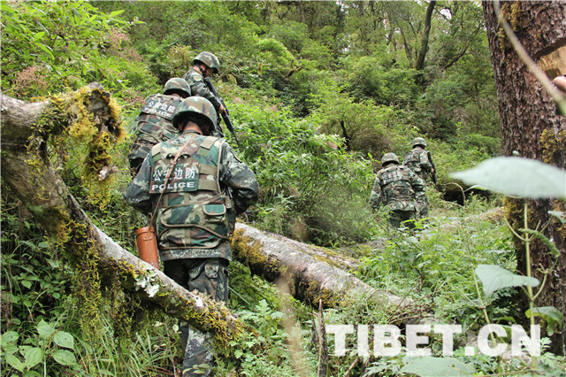 圖為玉麥邊防派出所官兵在密林中巡邏。攝影:趙二召