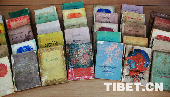 喜馬拉雅文庫搜集的格薩爾木刻本和手抄本。攝影:易文文