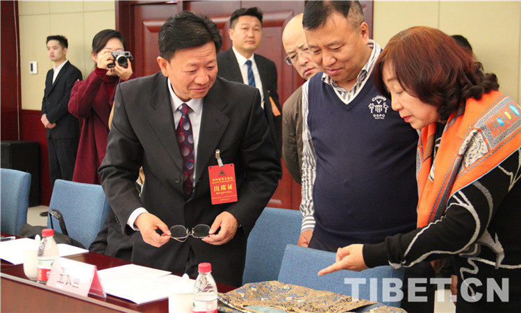 畢紅總結(jié)道,佛教對中國傳統(tǒng)服飾文化,尤其是清朝皇室服飾文化的影響,早已超越了表層符號的意義,而深化為一種觀念、一種審美。圖為參會嘉賓現(xiàn)場研究交流古典美衣,攝影:李元梅。(中國西藏網(wǎng) 記者/李元梅)
