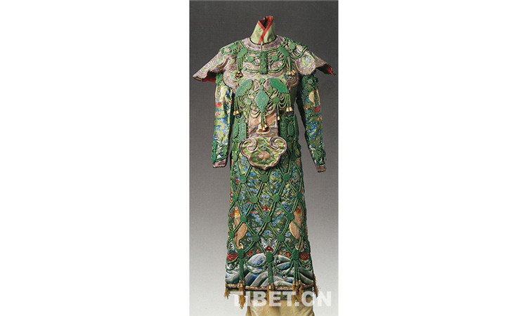 中國西藏網(wǎng)訊 “鋪翠冠華,燃金雪柳,簇帶爭濟(jì)楚。雍富彩錦,百蝶穿花,絲縷亂錦繡?!鼻宕始曳?,既融入了滿族的騎射文化元素,又借鑒吸收了傳統(tǒng)服飾文化中的色彩與紋飾等精髓,其中,不乏佛教文化元素的風(fēng)采。