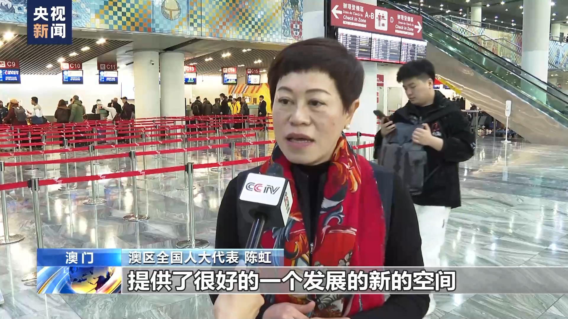 澳區(qū)全國人大代表 陳虹:國家給了澳門很好的發(fā)展的機(jī)遇跟平臺(tái),提供了很好的一個(gè)發(fā)展的新的空間,特別是深合區(qū),粵港澳大灣區(qū),為澳門居民更好地融入國家發(fā)展大局提供了這么好的空間。