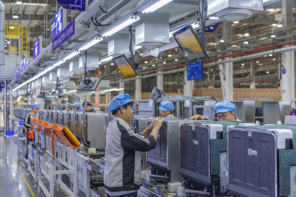 4月9日,在位于重慶市江北區(qū)的重慶海爾洗碗機互聯(lián)工廠,工作人員在生產(chǎn)線上作業(yè)。新華社記者黃偉 攝