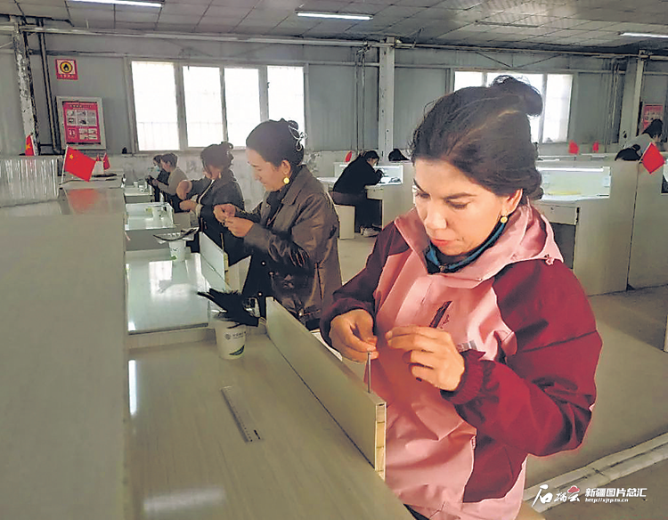 該公司負(fù)責(zé)人迪麗達(dá)爾·克依木說(shuō):“這個(gè)月我們有個(gè)100萬(wàn)元的訂單,工人正加班加點(diǎn)生產(chǎn)?!?/p>