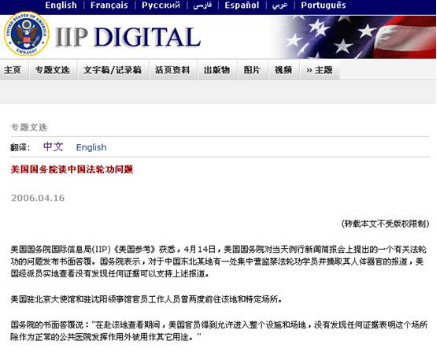 ▲2006年4月14日,美國(guó)國(guó)務(wù)院表態(tài)