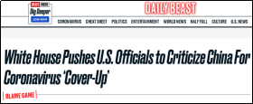 ▲美國(guó)《野獸日?qǐng)?bào)》報(bào)道截圖,題為《白宮推動(dòng)官員批評(píng)中國(guó)掩蓋新冠肺炎疫情》