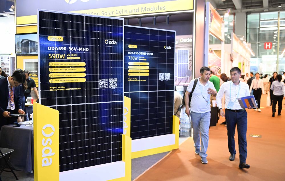 在創(chuàng)維公司的展廳,眾多客商圍觀一款可以由直面屏變?yōu)榍嫫恋淖冃坞娨?。除家電外,公司還專設(shè)新能源光伏的展區(qū)。創(chuàng)維公關(guān)負(fù)責(zé)人孫妮介紹說:“四年內(nèi),創(chuàng)維新能源業(yè)務(wù)從無到有,目前達(dá)到約234億元的規(guī)模?!泵鎸θ蚬夥皟δ茴I(lǐng)域的巨大市場機(jī)遇,創(chuàng)維集團(tuán)積極推進(jìn)新能源業(yè)務(wù)出海,現(xiàn)已布局到澳大利亞、墨西哥、南非等27個國家和地區(qū)。