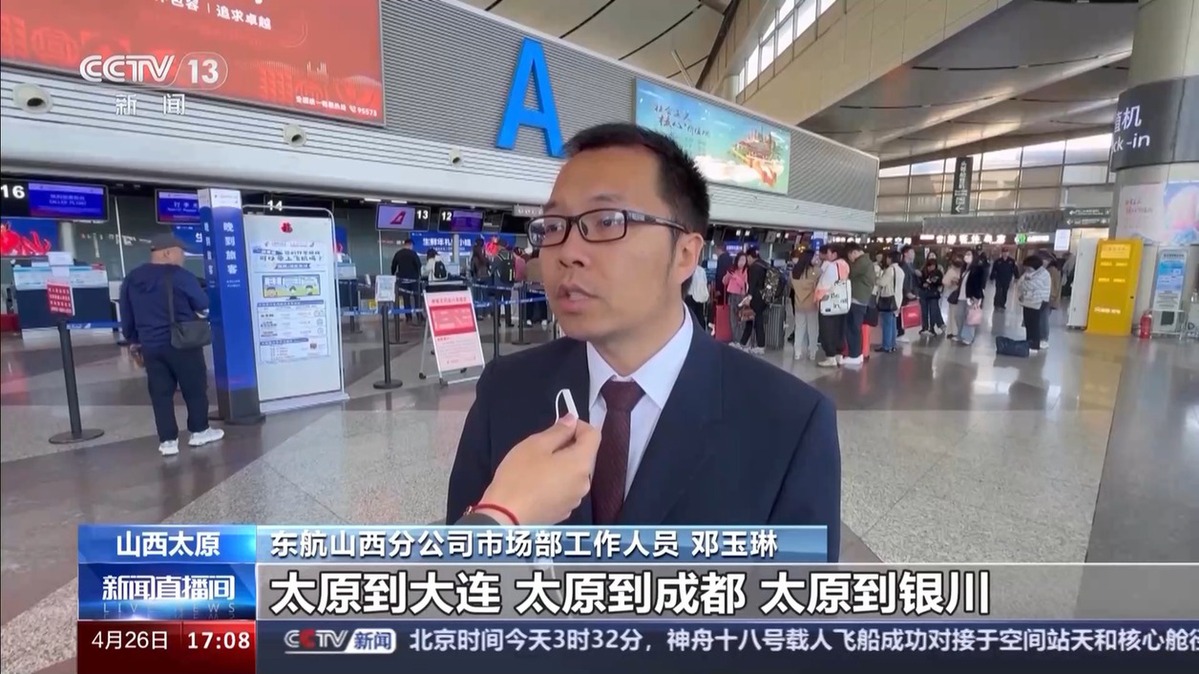 東航山西分公司市場部工作人員鄧玉琳 :從目前航班的運力情況來看,太原到大連,太原到成都,太原到銀川,太原到重慶、寧波這些城市,整個五一期間的預訂情況是比較好的。主要的到達目的地涉及國內(nèi)30余個大中小城市,還有兩個國際和地區(qū)航點。目前整體的運力投入,能夠極大地滿足和方便廣大旅客的“五一”出行需求。