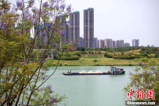 近日,廣西南寧市藍(lán)花楹盛開,藍(lán)紫色彩為城市增添了一道浪漫美景。