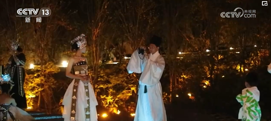 距離成都60多公里的德陽(yáng)市,運(yùn)營(yíng)只有半年多的沉浸式小劇場(chǎng)里擠滿了游客。這個(gè)將戲劇、演藝、音樂(lè)、歌舞等多種藝術(shù)形態(tài)融為一體的演出,已經(jīng)成為游客游覽三星堆之外必到的新目的地。