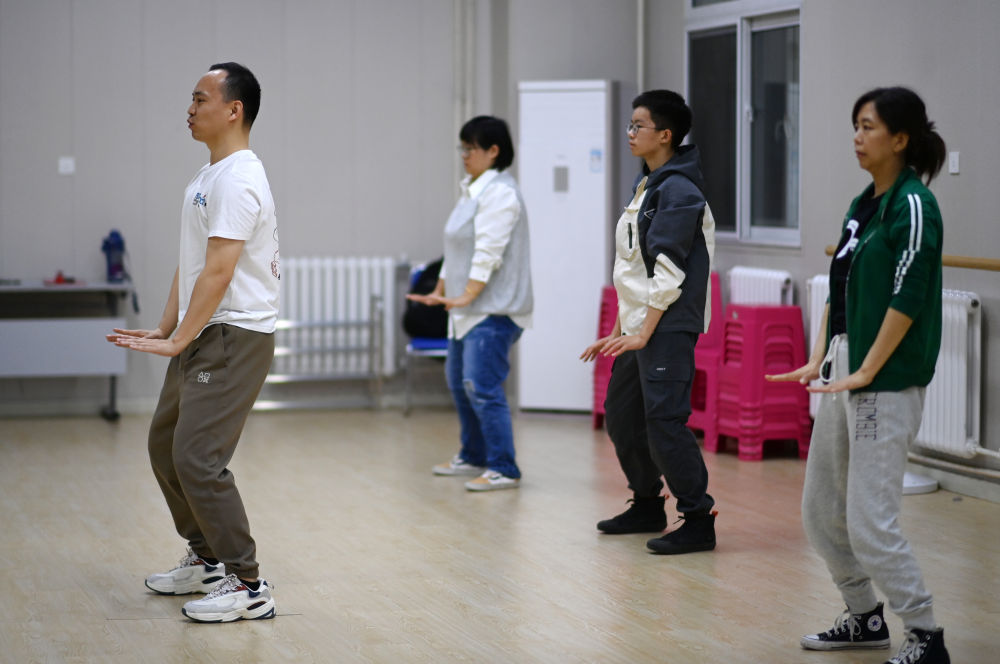 ↑4月26日,在天津青年宮,學(xué)員在青年夜校民族舞課上練習(xí)。