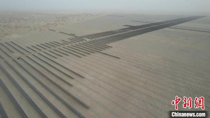 截至3月底,中電建25萬(wàn)千瓦光伏項(xiàng)目已完成光伏板基樁的建設(shè)和第一期5萬(wàn)余塊光伏板的安裝。今年6月,這里將建成一個(gè)占地約7000畝、年發(fā)電量4.14億千瓦時(shí)的光伏基地,并配套建設(shè)一座220千伏升壓站,通過(guò)“光伏+治沙”筑牢生態(tài)防線。
