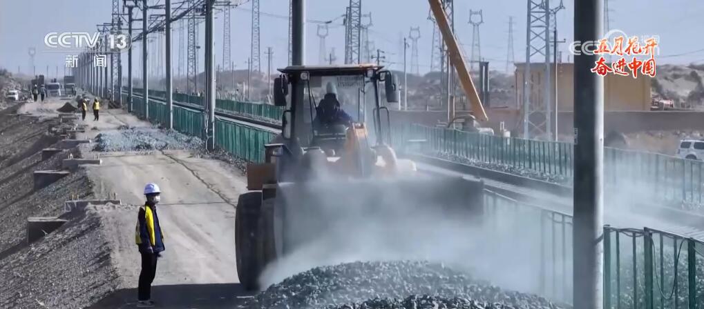 “五一”期間,青海格爾木至新疆庫爾勒鐵路擴能改造工程也進入攻堅階段。在新疆段施工現(xiàn)場,近300名工作人員正在抓緊作業(yè),為后續(xù)電氣化改造奠定基礎(chǔ)。