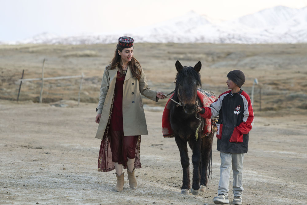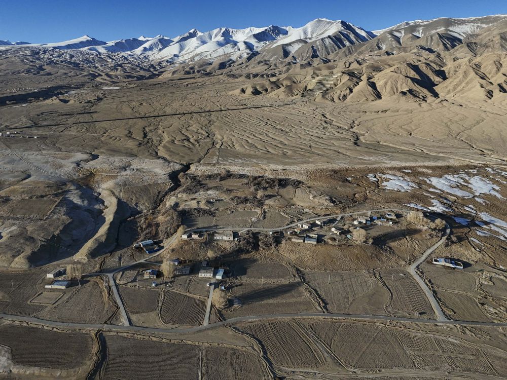 艾爾開牙·多力開家住帕米爾高原上的新疆塔什庫爾干塔吉克自治縣瓦恰鄉(xiāng)夏布孜喀拉村(2024年3月23日攝,無人機照片)。