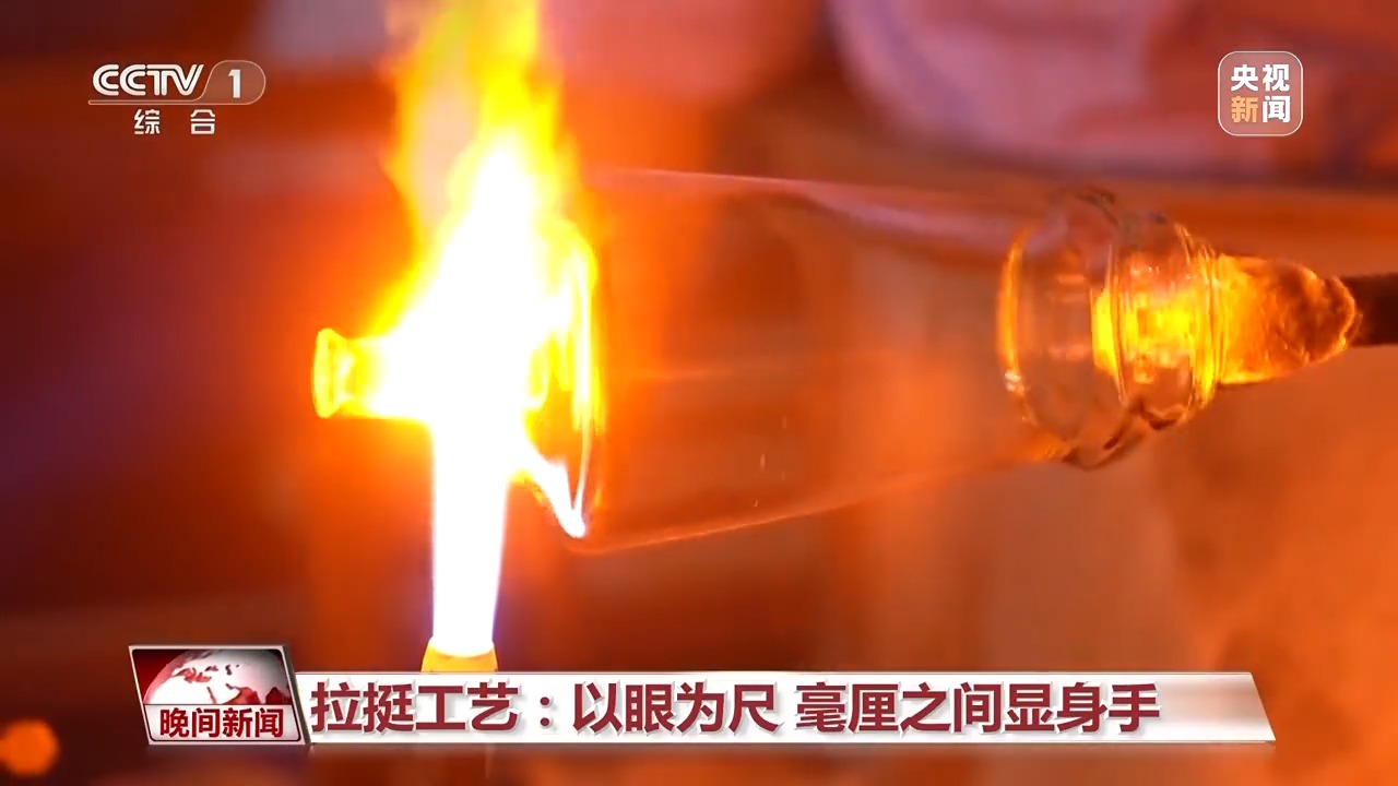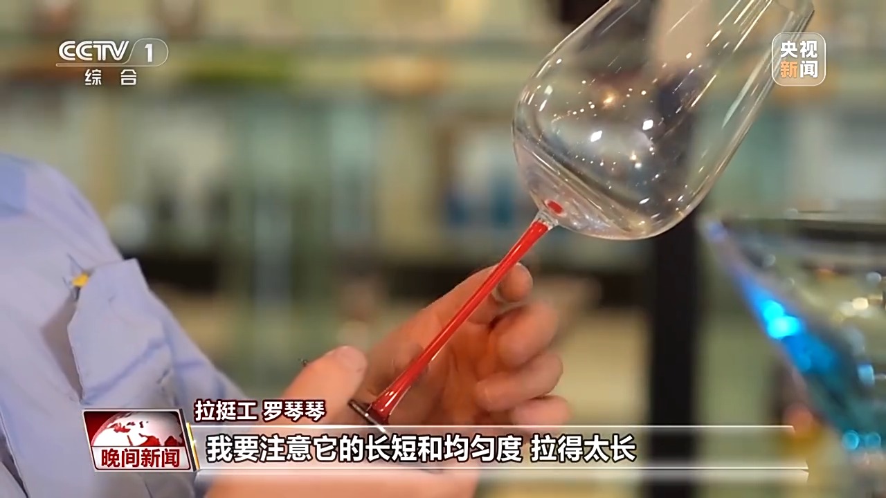 在素有“中國(guó)玻璃器皿之都”美譽(yù)的山西祁縣,人工吹制玻璃器皿的手藝被認(rèn)定為省級(jí)非遺。一團(tuán)團(tuán)紅彤彤的玻璃溶液,在數(shù)十位師傅手中傳來傳去,吹好杯身的毛坯,傳遞到拉挺師傅羅琴琴手中。
