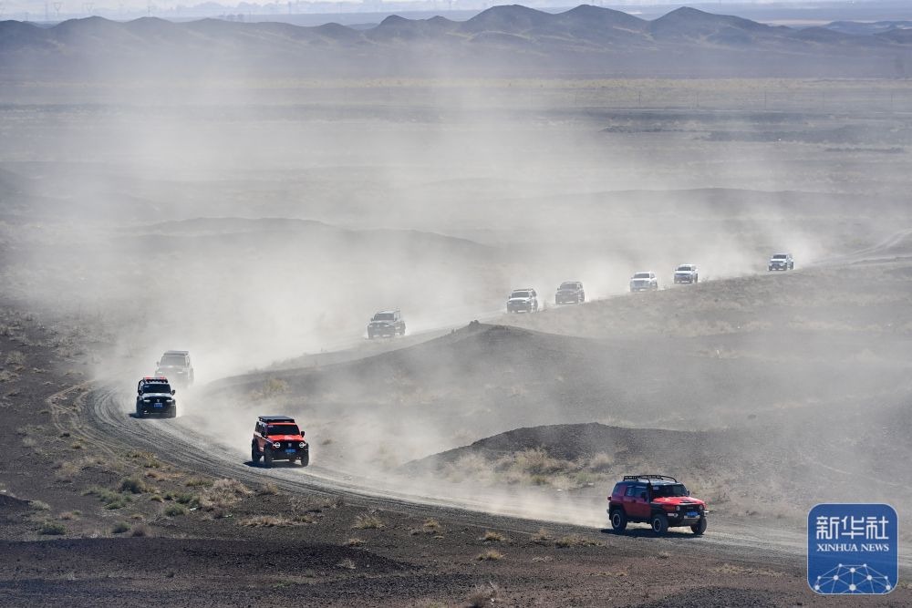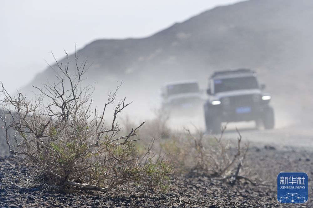 在新疆克拉瑪依市烏爾禾區(qū),車友駕駛越野車穿越無人區(qū)(5月2日攝)。