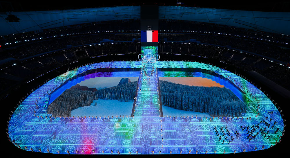 ↑2022年2 月4日,法國代表團(tuán)在北京冬奧會開幕式上入場。