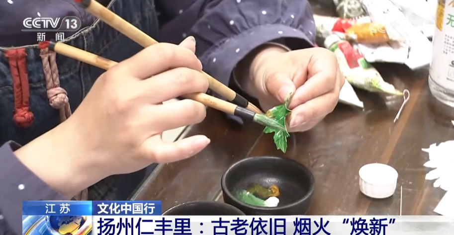 總臺央視記者 楊威:將傳統(tǒng)的非遺技能進(jìn)行適合現(xiàn)代生活的活化式展現(xiàn),是仁豐里非遺呈現(xiàn)的一大特色。像作為江蘇省級非遺的揚州通草花制作技藝,已經(jīng)有了超過兩千年的歷史,以前只是專攻于宮廷,如今在這里您可以近距離地觀賞手藝人們現(xiàn)場制作的技巧,也可以親自上手做一個屬于自己的通草花帶回家。