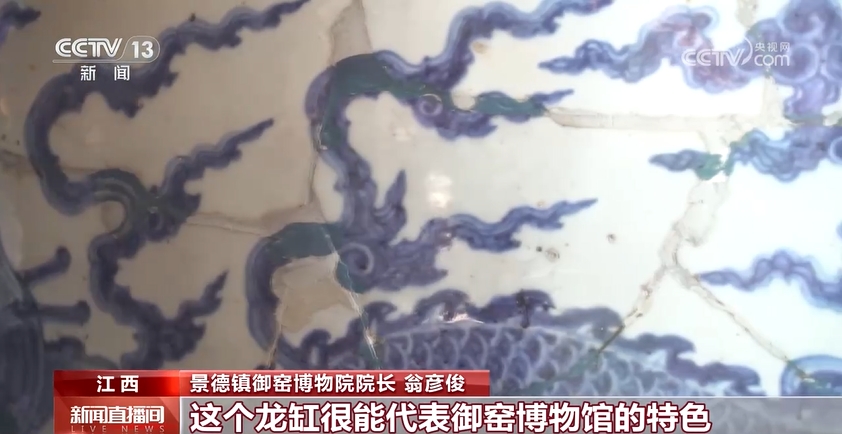 景德鎮(zhèn)御窯博物院院長 翁彥?。?/strong>我們的所有的展品都來自于我們身后的御窯廠,通過考古挖掘出來的。當(dāng)年御窯對落選品的處理制度非常嚴(yán)格,不合格的就要打碎還集中掩埋,所以我們能夠發(fā)現(xiàn)這么多的碎片,并且能夠把它拼對出來。這個龍缸很能代表御窯博物館的特色。