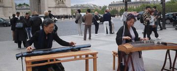 凱旋門下,神奇的一幕發(fā)生了,中國(guó)藝術(shù)家和法國(guó)軍樂(lè)隊(duì)同框演奏,巴黎街頭同時(shí)回蕩著中法兩國(guó)的音樂(lè)聲。