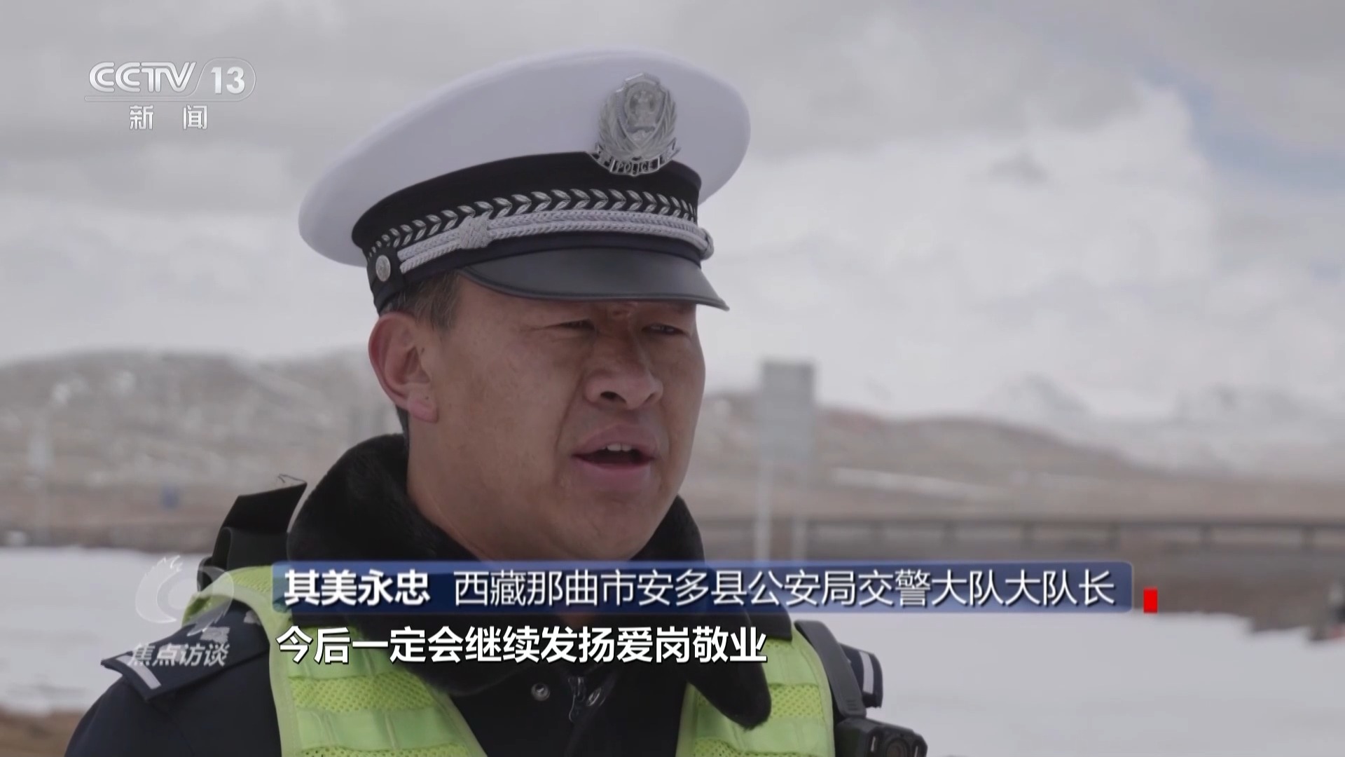 西藏那曲市安多縣公安局交警大隊(duì)大隊(duì)長 其美永忠:這個(gè)榮譽(yù)不是我個(gè)人的,是我們大隊(duì)的榮譽(yù)。今后一定會(huì)繼續(xù)發(fā)揚(yáng)愛崗敬業(yè)、艱苦奮斗、甘于奉獻(xiàn),把群眾服務(wù)好,把“天路”守護(hù)好。