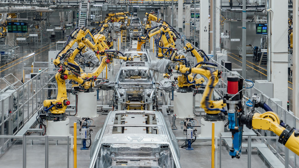 這是在重慶市兩江新區(qū)拍攝的賽力斯汽車(chē)超級(jí)工廠(chǎng)焊裝車(chē)間生產(chǎn)線(xiàn)(2024年2月26日攝,無(wú)人機(jī)照片)。新華社發(fā)(高彰 攝)