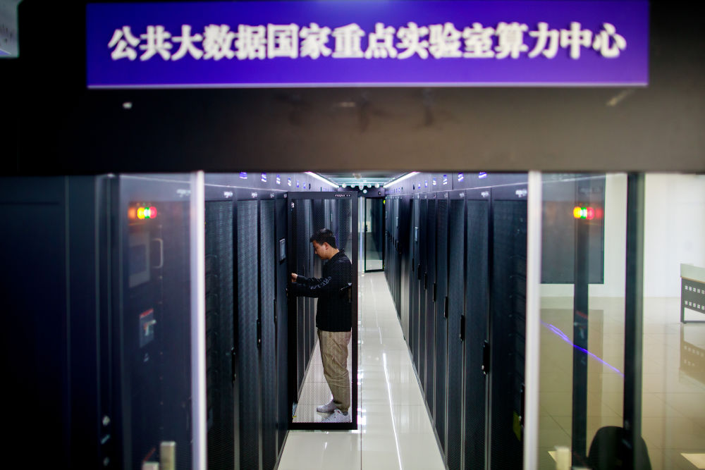 2023年5月23日,工作人員在貴州大學(xué)省部共建公共大數(shù)據(jù)國(guó)家重點(diǎn)實(shí)驗(yàn)室算力中心機(jī)房檢查設(shè)備。新華社記者 劉續(xù) 攝