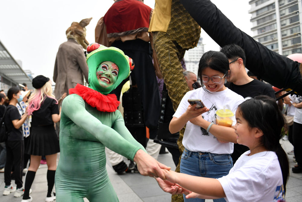 5月8日在長沙的演出現(xiàn)場(chǎng),法國著名的阿奇博·卡拉曼特拉劇團(tuán)演員們通過巨型木偶、馬戲和空中舞蹈等形式進(jìn)行表演,營造出了夢(mèng)幻、幽默詼諧和互動(dòng)感強(qiáng)的演出風(fēng)格,收獲了現(xiàn)場(chǎng)觀眾的陣陣掌聲。