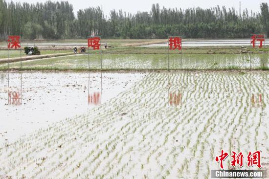 5月13日,在位于該市帕哈太克里鄉(xiāng)的“海水稻”種植基地,各類機(jī)械和工作人員都忙碌起來,搶抓農(nóng)時(shí)進(jìn)行“海水稻”播種工作。隨著氣溫回升,新疆喀什市的1.3萬畝“海水稻”進(jìn)入插秧期。圖為工作人員駕駛著插秧機(jī),搶抓農(nóng)時(shí)進(jìn)行“海水稻”播種工作。