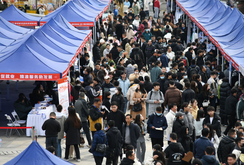 求職者在2024年陜西工會(huì)“春送崗位”就業(yè)服務(wù)月現(xiàn)場招聘會(huì)上了解招聘信息(2024年3月6日攝)。新華社記者 張博文 攝