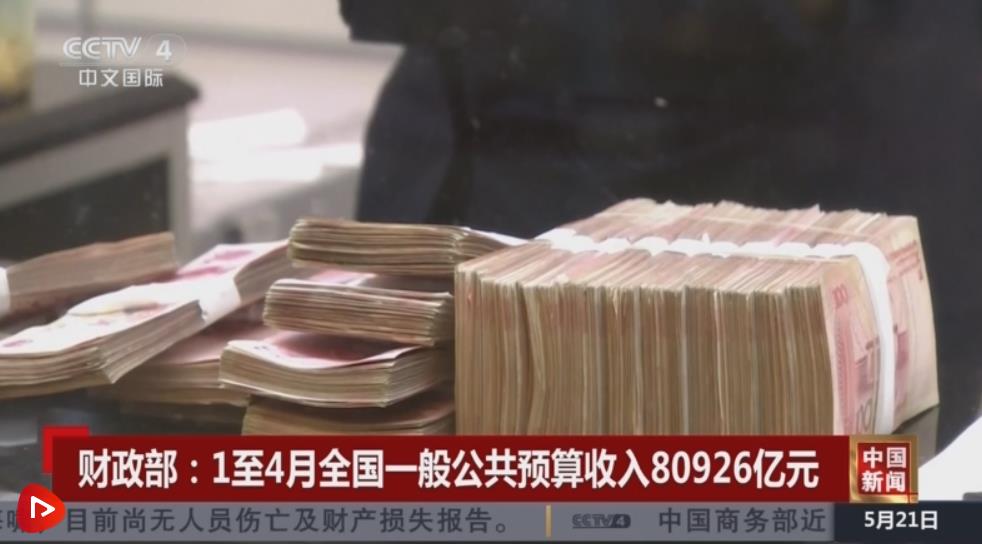 財(cái)政部:1—4月全國(guó)一般公共預(yù)算收入80926億元