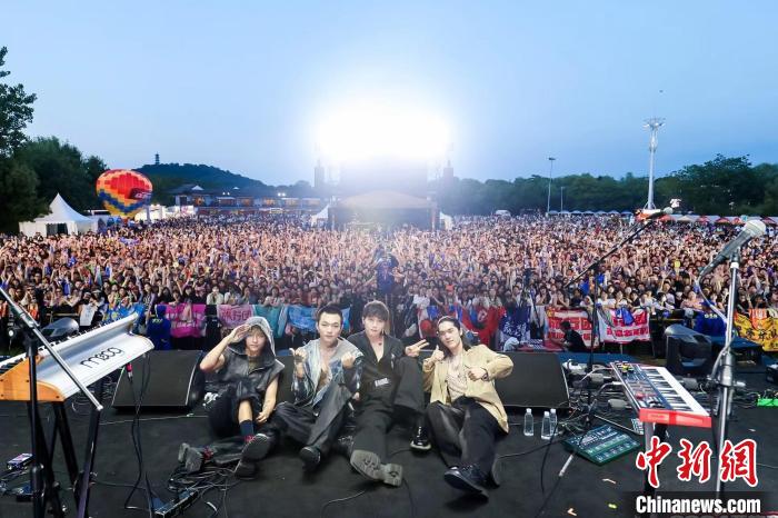西施音樂節(jié)現(xiàn)場,觀眾為臺灣“八三夭”樂隊歡呼?!≈T暨臺辦供圖