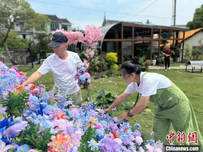 劉鳳娟(右一)在裝飾小院。 胡思佳供圖
