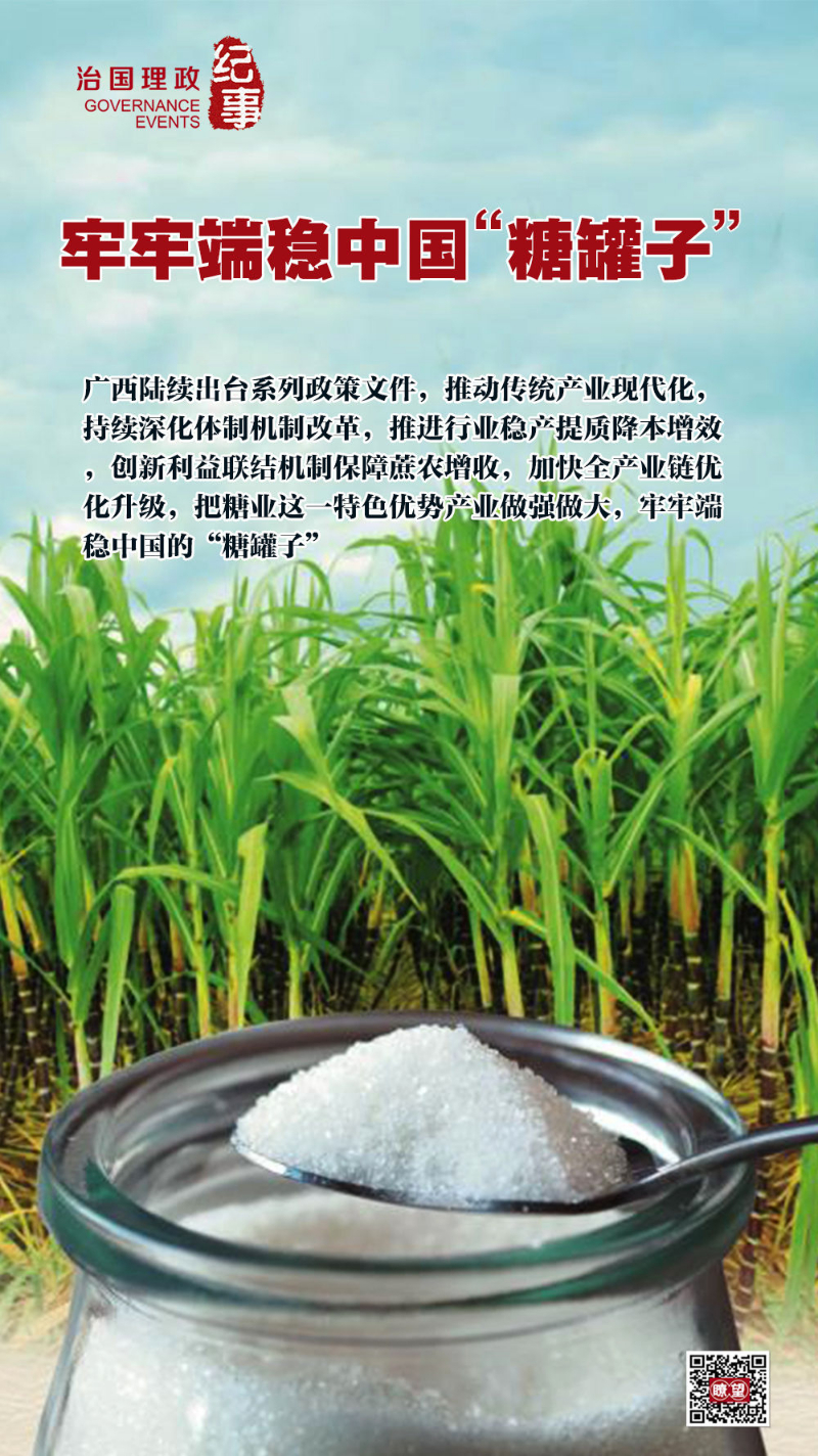 《廣西壯族自治區(qū)人民政府關(guān)于深化體制機制改革加快糖業(yè)高質(zhì)量發(fā)展的意見》《廣西糖業(yè)降本增效三年行動計劃工作方案》《廣西深化糖料蔗良種良法技術(shù)推廣工作實施方案》……廣西陸續(xù)出臺系列政策文件,推動傳統(tǒng)產(chǎn)業(yè)現(xiàn)代化,持續(xù)深化體制機制改革,推進行業(yè)穩(wěn)產(chǎn)提質(zhì)降本增效,創(chuàng)新利益聯(lián)結(jié)機制保障蔗農(nóng)增收,加快全產(chǎn)業(yè)鏈優(yōu)化升級,把糖業(yè)這一特色優(yōu)勢產(chǎn)業(yè)做強做大,牢牢端穩(wěn)中國的“糖罐子”。