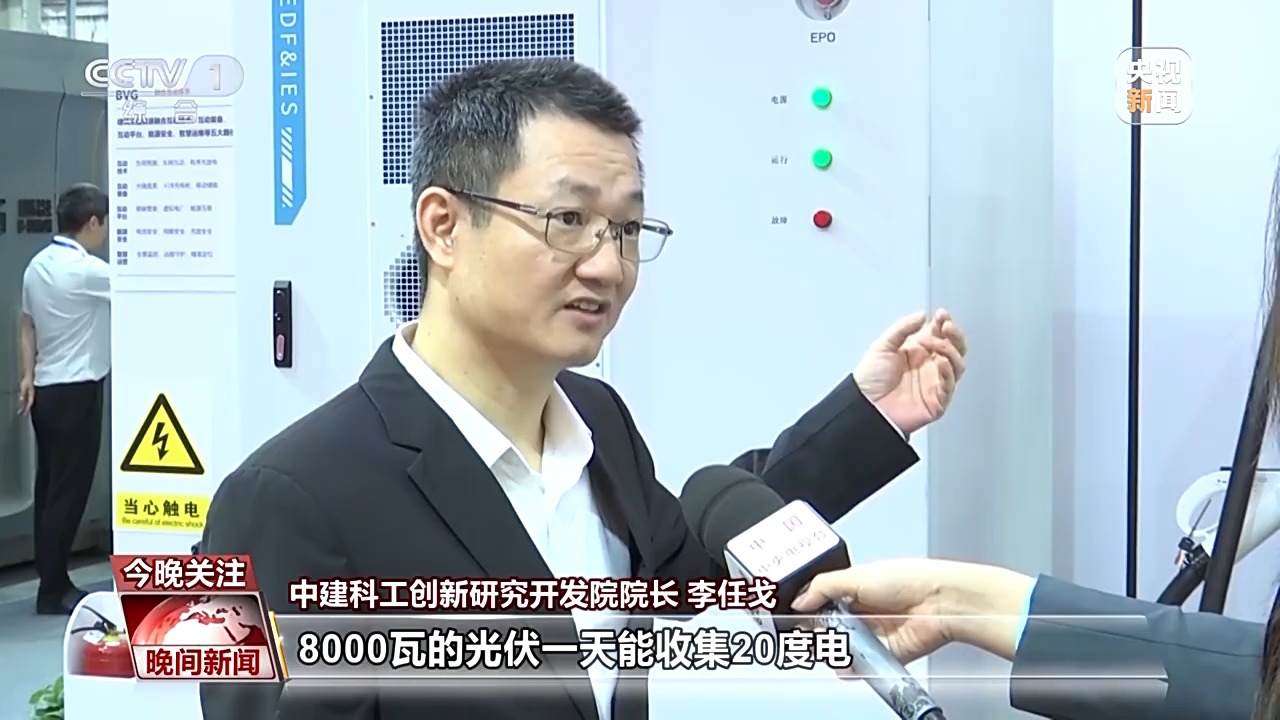 中建科工創(chuàng)新研究開發(fā)院院長 李任戈:我們屋頂裝了8000瓦的光伏,一天能收集20度的電,我們這輛汽車充滿是100度電,我們反過來放電的時候,我們這輛汽車能夠供這個房子一個星期使用的電量。
