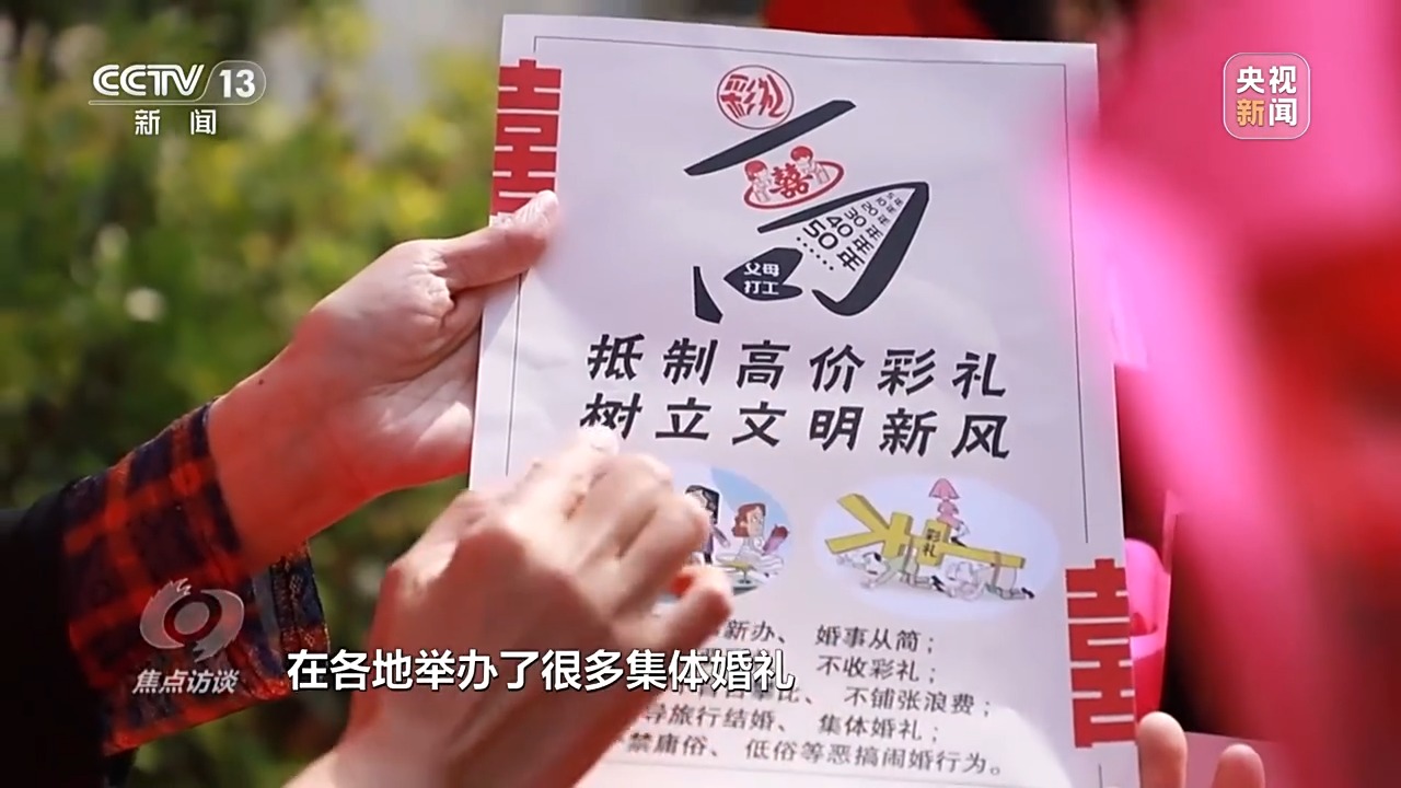 華中師范大學中國農(nóng)村研究院教授 黃振華:通過移風易俗的方式,發(fā)揮村莊的內(nèi)生動力。比如制定一些村規(guī)民約,調(diào)動村民的積極性。有些地方成立紅白理事會,由村里面的村干部、有威望的老人或者專門從事紅白事務的人參與,共同參與整治高價彩禮問題,取得了很好的成效。