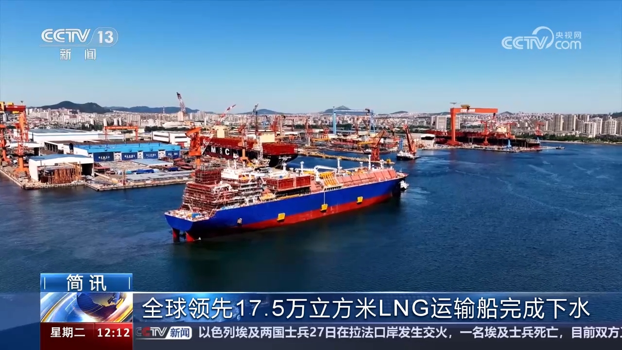 全球領(lǐng)先 17.5萬(wàn)立方米LNG運(yùn)輸船完成下水