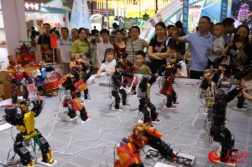 汕頭展區(qū),機器人跳起“英歌舞”。人民網(wǎng) 劉森君攝