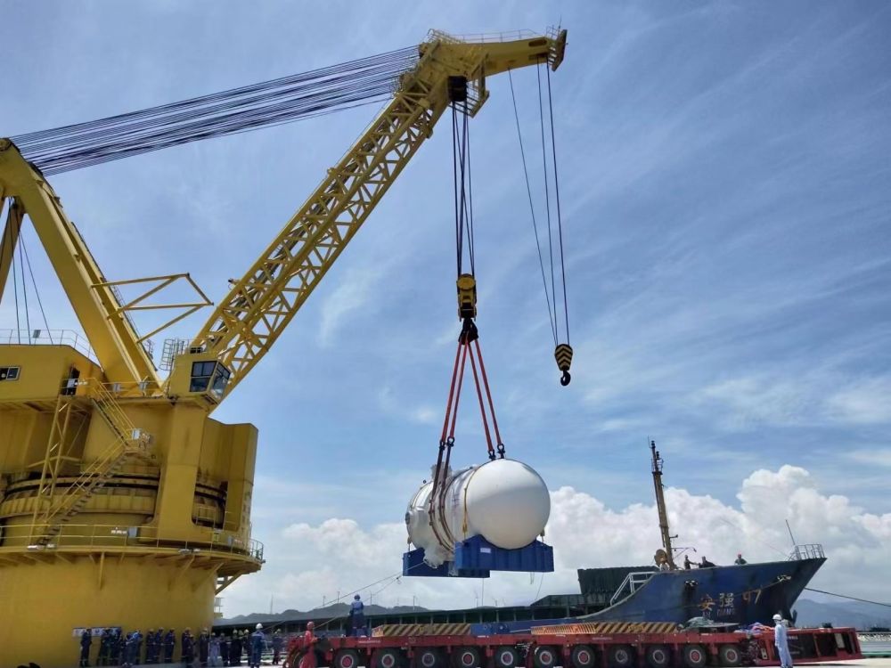 2022年8月9日,我國(guó)自主三代核電“華龍一號(hào)”批量化工程——中核集團(tuán)漳州核電2號(hào)機(jī)組反應(yīng)堆壓力容器在進(jìn)行吊裝(資料照片)。