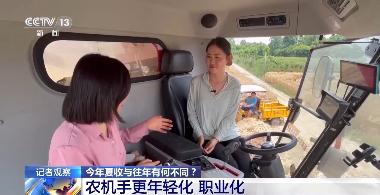 通過(guò)采訪農(nóng)機(jī)手,還發(fā)現(xiàn)了一個(gè)變化,農(nóng)機(jī)手現(xiàn)在普遍年輕化、職業(yè)化了。90后甚至00后都加入農(nóng)機(jī)手的隊(duì)伍中來(lái)。其中一位25歲的女機(jī)手姜曉娜,她以前是一個(gè)美甲師,做的是堪比繡花針一樣精細(xì)的輕松活兒,現(xiàn)在卻駕駛農(nóng)機(jī)在麥田里劈波斬浪;她身材嬌小,但是駕駛3米高的農(nóng)機(jī)很老到很霸氣。