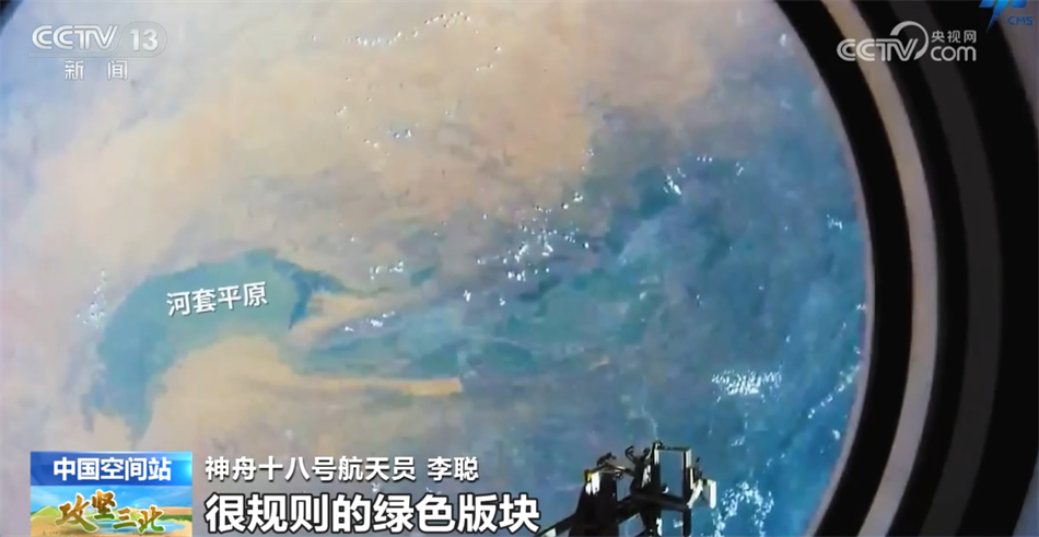 看完黃河沿線各省市區(qū)隨著“三北”工程建設而發(fā)生的變化,不知道您是否好奇,如果我們再把視角拉高,在太空俯瞰“三北”大地,又是怎樣的一幅景象呢?在距離地球約400公里的上空,神舟十八號航天員乘組的三名航天員正在中國空間站執(zhí)行任務,他們也拍攝下了一些“三北”地區(qū)的畫面,我們一起去看看。