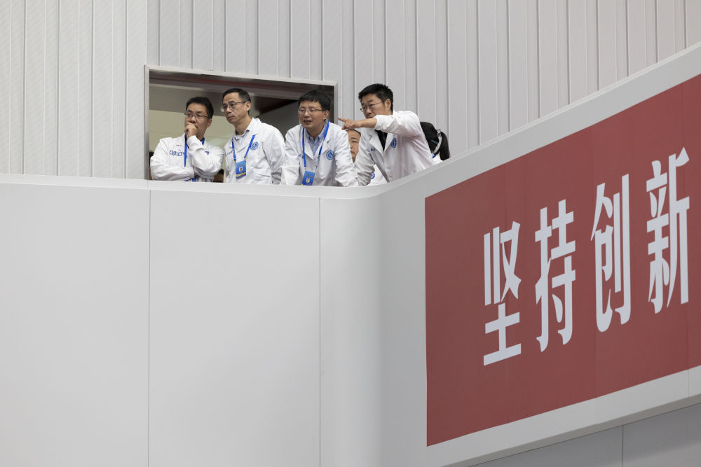 6月4日,在北京航天飛行控制中心,工作人員在觀察嫦娥六號上升器自月球背面起飛狀況。