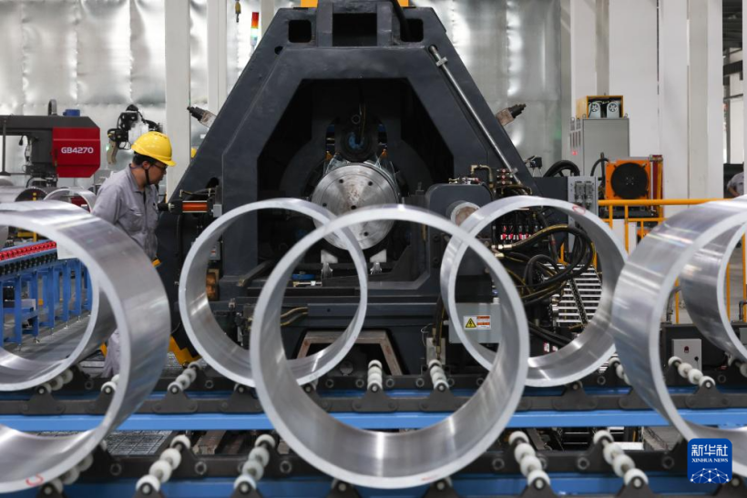 5月31日,一名工作人員在江蘇國富氫能技術(shù)裝備股份有限公司的儲氫設(shè)備生產(chǎn)車間內(nèi)作業(yè)。新華社記者 楊磊 攝
